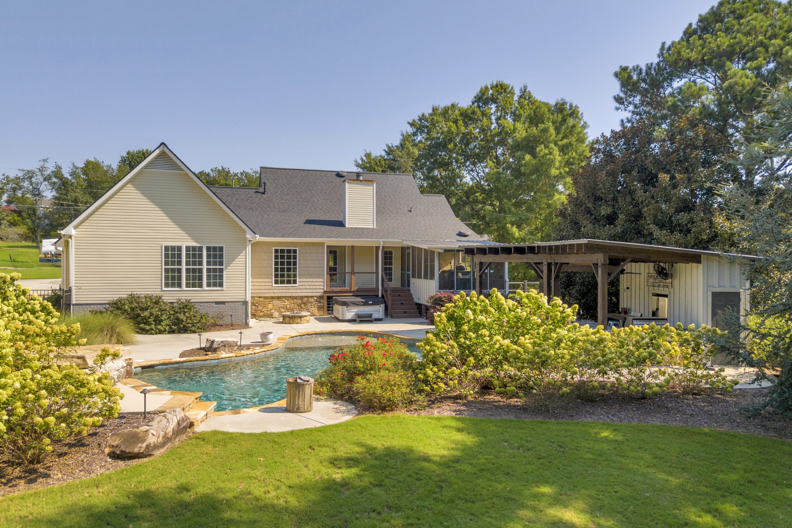 With easy access to Hwy 138 and I-20, this property is close to everything! It sits in the heart of Walnut Grove on a very private 1 acre. The home has been lovingly upgraded and features a split bedroom plan, island bar seating, wood shelved pantry, flex room, upgraded master bathroom, and eat in kitchen that leads to backyard paradise! The backyard includes an outdoor kitchen, half bath for pool guests, in ground pool with underwater stools and tanning shelf, garden area with raised beds, screened in porch with grilling station, covered back deck, firepit, and detached garage with so many uses!